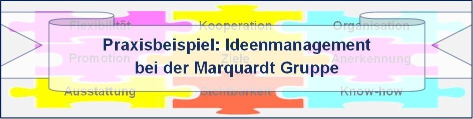 - Besondere Ideen stellen wir in unserer Mitarbeiter-App We@Marquardt vor. Dabei kann es sich um besonders werthaltige oder auch um außergewöhnlich pfiffige und originelle Ideen handeln.