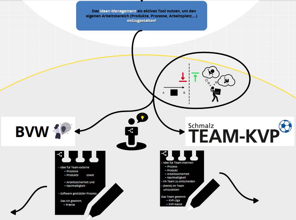 Abb. 1: Unterscheidung zwischen BVW und Team-KVP im Concept-Board zur Vorstellung des Ideenmanagements bei Schmalz
