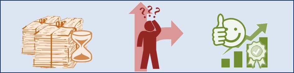 - Wenn der „Entscheider“ nicht „Nutznießer“ ist, sondern nur fachlich Verantwortlicher oder Kostenträger für die Umsetzung, hat er kaum Motivation zu einer schnellen Entscheidung. Er spürt keinen Bedarf, keine Notwendigkeit und keinen Zeitdruck. Die Bearbeitung kostet ihn im Gegenteil nur Zeit und Geld, ohne Aussicht auf einen (eigenen) Nutzen. Da die Nutzeffekte für jeden einzelnen der vielen Nutznießer jeweils nur klein sind, besteht auch bei diesen kein so großes Interesse, dass sie sich mit Nachdruck um eine Entscheidung bemühen würden.