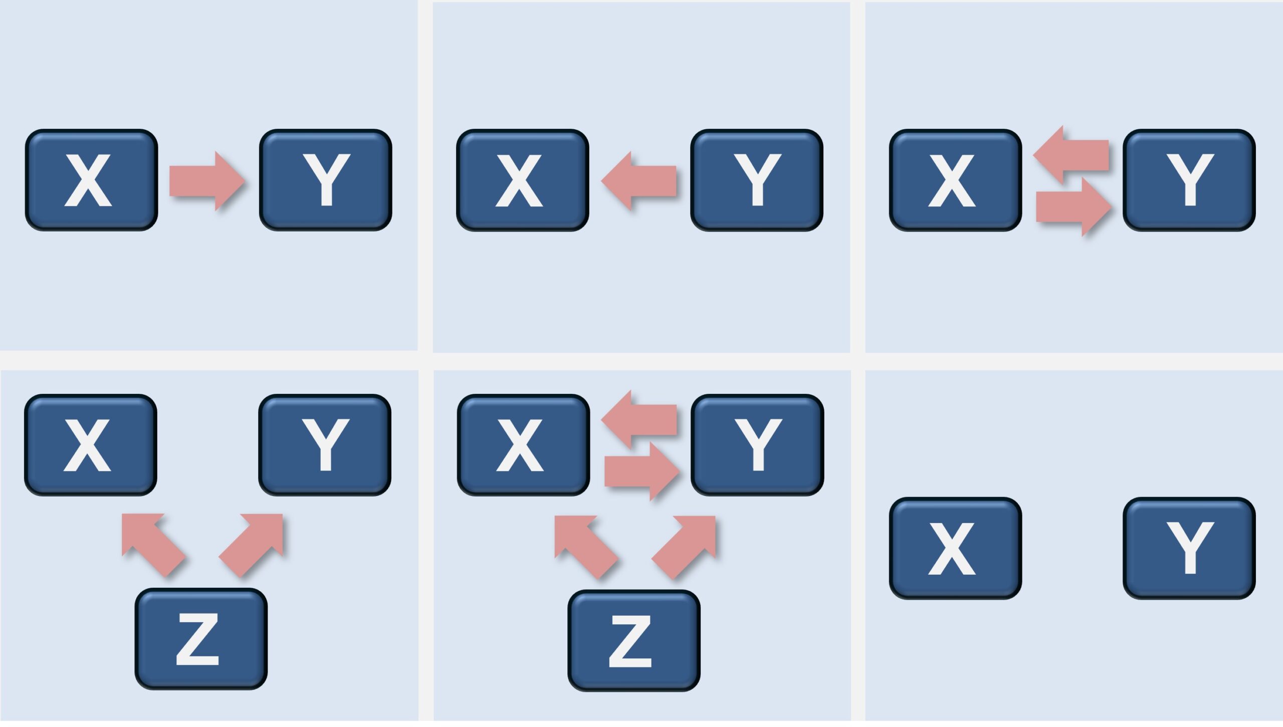 Abb. 1: Bei Zusammenhängen ist nicht immer klar, was „Henne“ und was „Ei“ ist, sie können direkt oder indirekt sein, sie können kombiniert sein, und sie können auch gar nicht vorhanden sein…